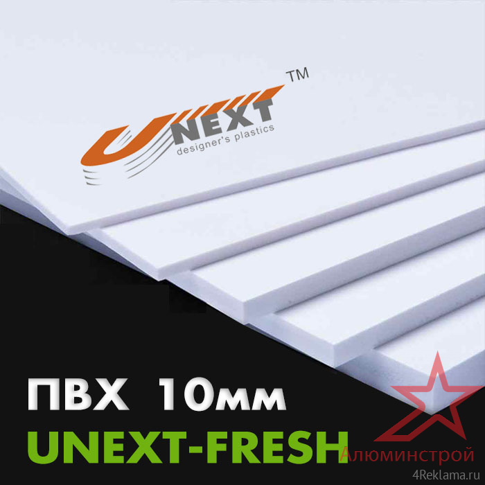 Облегченный ПВХ пластик UNEXT-FRESH имеет оптимальную плотность 0,50 г/см³ что позволяет его использовать как конструкционный и теплоизоляционный материал. Поверхность пластика уже подготовленна для окрашивания или печати УФ отверждаемыми чернилами. ПВХ-листы UNEXT-FRESH обеспечивают оптимальное соотношение "цена-качество" за счет легкого веса, прочности и жесткости. Пластик успешно применяется в рекламном производстве: для создания коробов, объемных букв, оформления витрин и стендов.